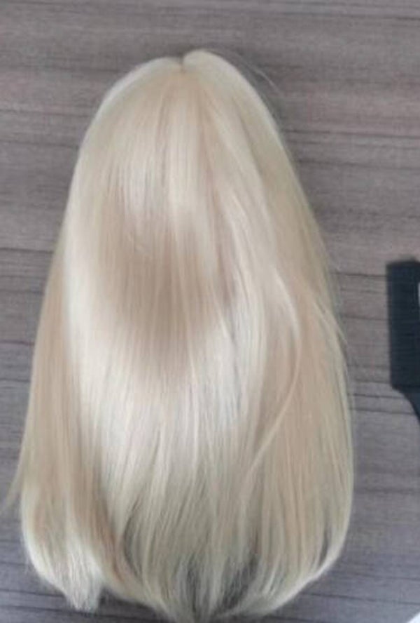 We are pleased to introduce the enhanced Arianna LUX, featuring a fully hand-tied monofilament cap for a secure, comfortable, and adhesive-free fit. This stunning new cap provides comfort and versatility with its expansive free parting space and lack of wefts, enabling limitless styling possibilities. Crafted from premium European hair, the tangle-free, cuticle-intact Arianna LUX mono guarantees longevity with proper care. Offered in small or medium, 130% and 150% density, this cap presents a lightweight, breathable alternative suitable for clients who find traditional wigs too warm. Details: 12 inches, fully hand-tied monofilament cap, pure white blonde available with or without bangs.