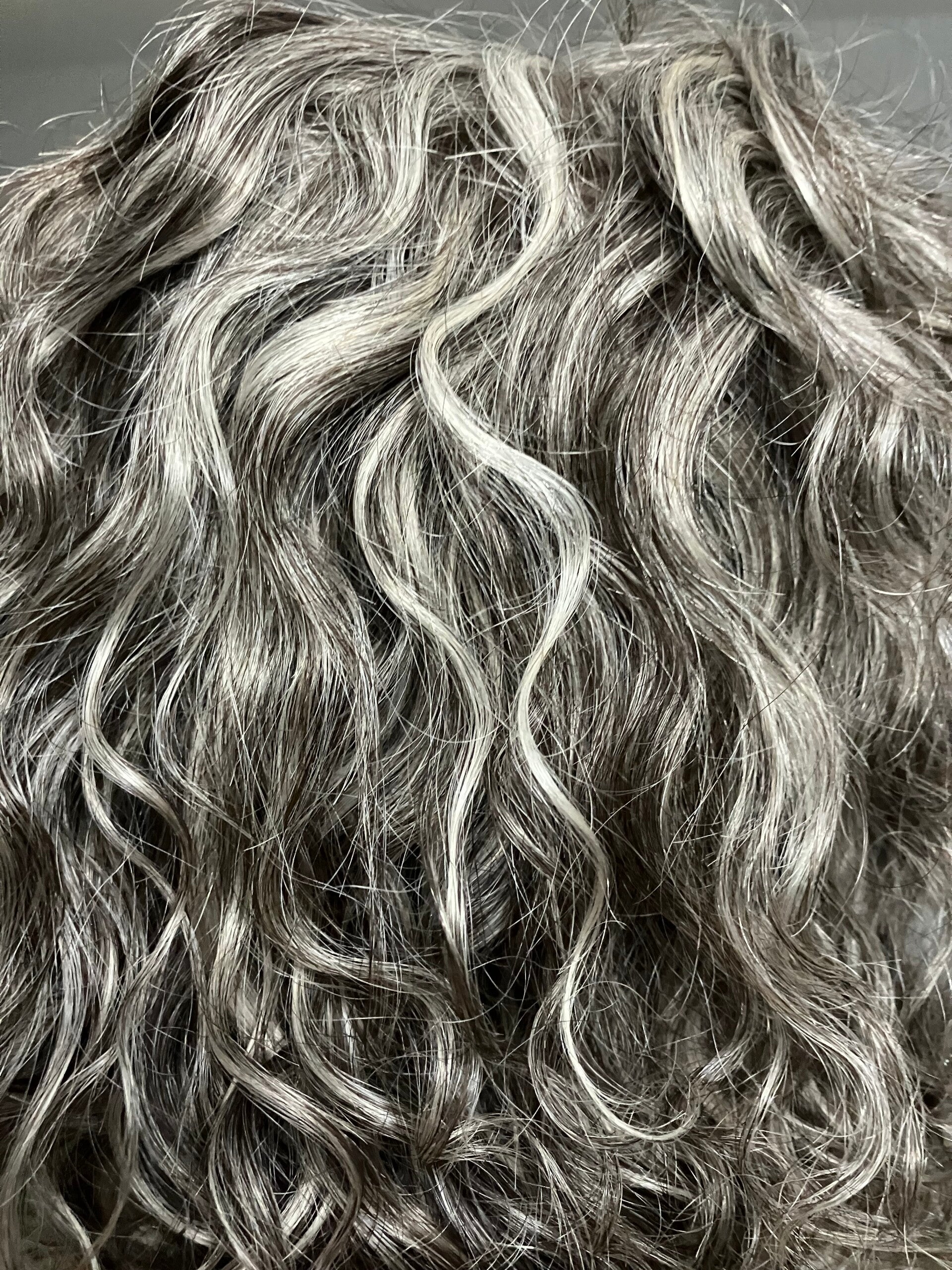 This stunning curly salt and pepper hair unit is available for immediate shipping and boasts an array of premium features. The 8/10 inches of 100% human hair is permed in a salon to achieve soft, fine curls, and is constructed with our premium European hair. The hand-tied monofilament 5*5 parting area and truly glue-less design ensure a natural, undetectable hairline. The unit features a soft, well-constructed cap with wefted back, light, thin wefts, and adjustable straps at the nape. A free brush set for curly hair is included as a gift. Please note that only one unit is available in stock, but it can be recreated in a longer length within six weeks.